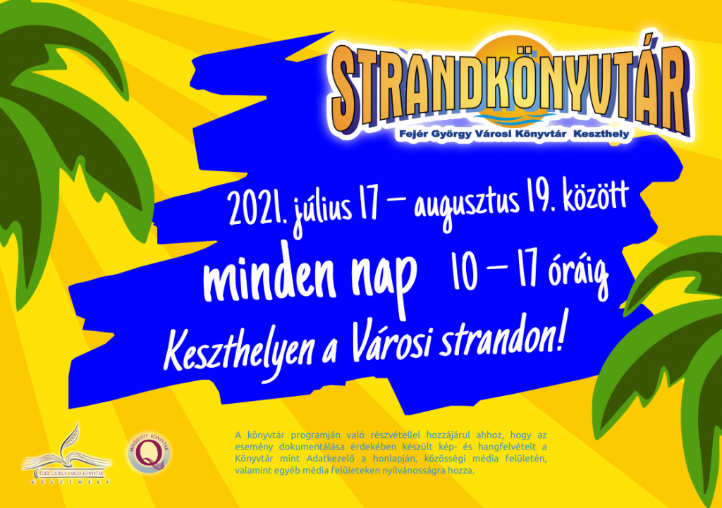 A keszthelyi Városi strandon július 17-től augusztus 19-ig nyitva lesz a strandkönyvtár minden nap 10-17 óráig!
