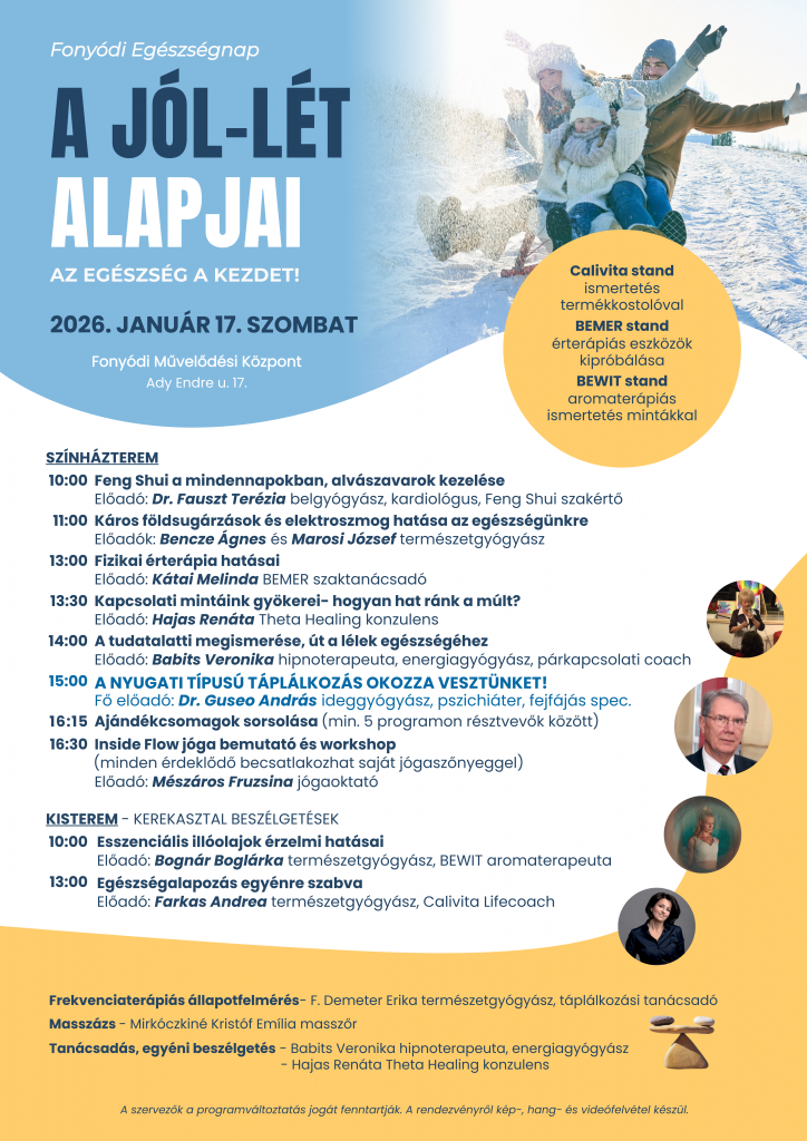 Hasznos előadások, új szemléletmódok és gyakorlati tanácsok, amelyek segítenek az egészségesebb mindennapok kialakításában.