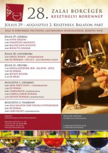 Zalai és környékbeli borászatok kínálják különböző boraikat – fehéret, vöröset, rozét, habzót – a 28. alkalommal megrendezendő Keszthelyi Borünnepen július 29. és augusztus 2. között.