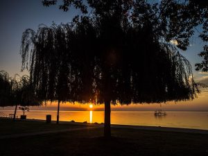 Az őszi kerti munkák a standokon is zajlanak, a csopaki fák gondozás után pedig nagyon csinosak. Különösen a naplementében. Fotó: facebook/Gyarmati Krisztián