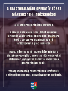 Balatonalmádi polgármestere, dr. Kepli Lajos a legnagyobb közösségi portálon tájékoztatta a városban és a környéken élőket a helyi operatív törzs legfrissebb intézkedéseiről. Eszerint lezárták Balatonalmádiban